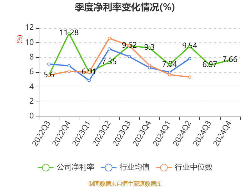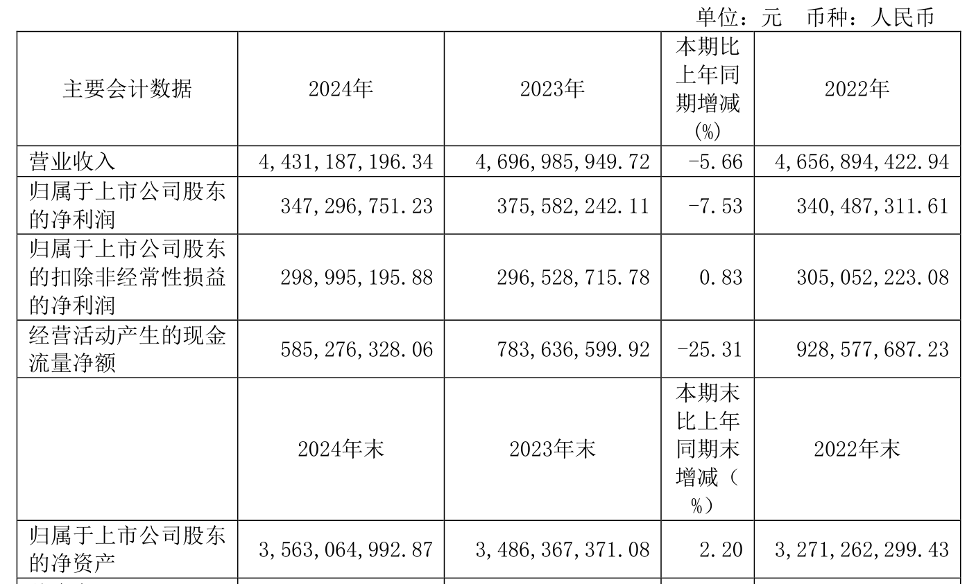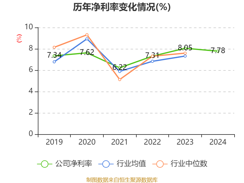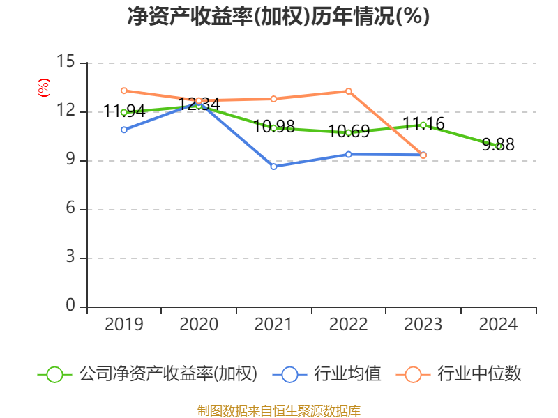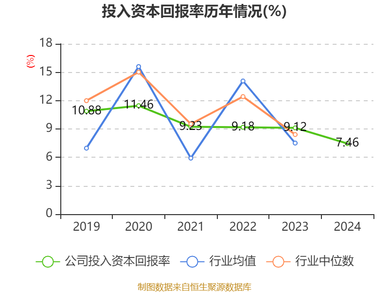 数据显示,2024年公司加权平均净资产收益率为9.88%,较上年同期下降1.28个百分点。公司2024年投入资本回报率为7.46%,较上年同期下降1.66个百分点。