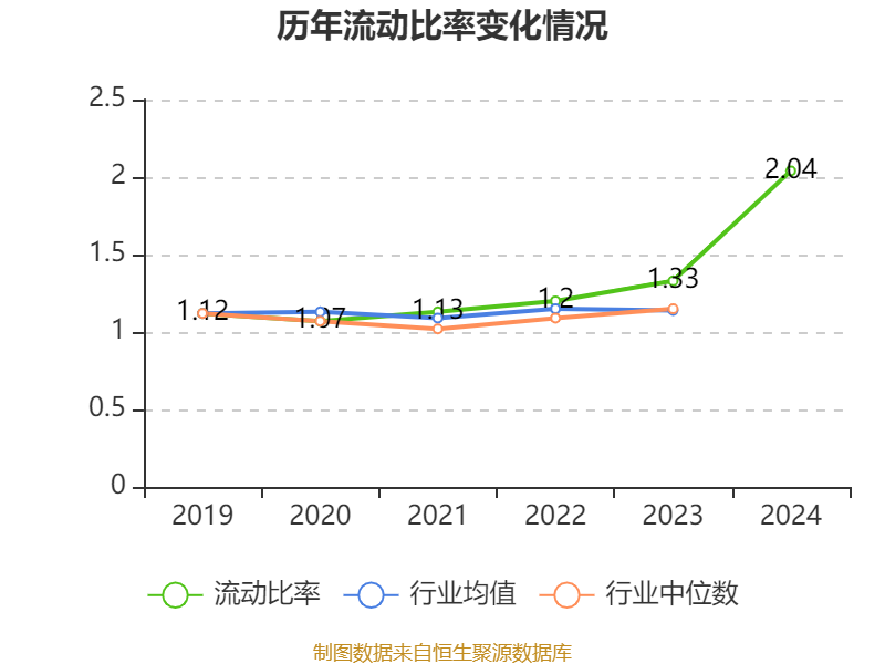 2024年,公司流动比率为2.04,速动比率为1.78。