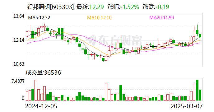 3月6日,得邦照明审议通过了《关于公司2024年度利润分配的议案》,公司拟向全体股东每10股派发现金股利7.40元(含税),合计派发现金股利3.46亿元,占2024年度归属于上市公司股东净利润的比例为99.65%。近三年得邦照明累计分红为6.63亿元,彰显出公司回报股东的决心。
