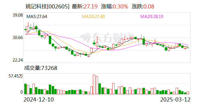 姚记科技3月12日大宗交易平台出现一笔成交,成交量15.62万股,成交金额424.71万元,大宗交易成交价为27.19元。该笔交易的买卖双方均为机构专用席位。