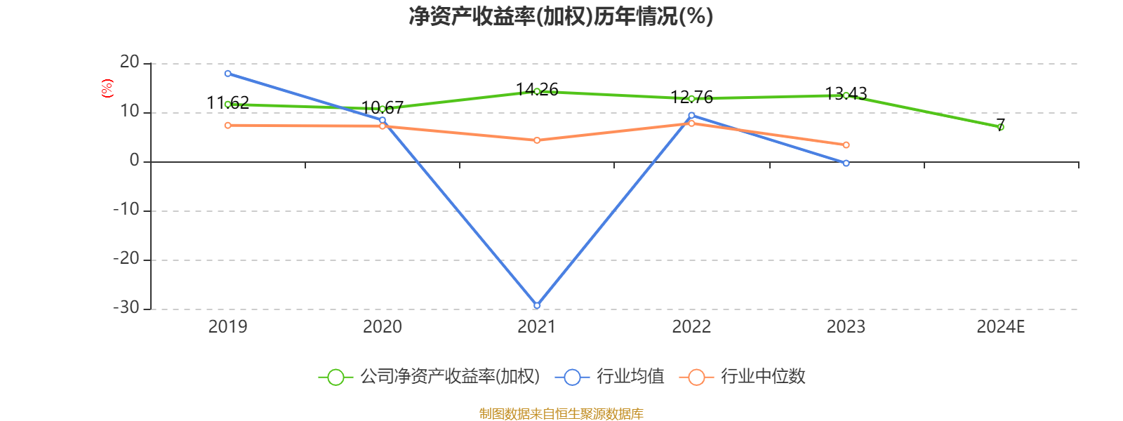 数据显示,2024年公司加权平均净资产收益率为7%,较上年同期下降6.43个百分点。