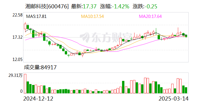 每经AI快讯,湘邮科技(SH 600476,收盘价:17.37元)3月14日晚间发布公告称,公司第八届第二十三次董事会会议于2025年3月14日在北京丰台区南三环东路25号湖南湘邮科技股份有限公司北京分公司第四会议室以现场+通讯方式召开。审议了《关于选举公司董事会专门委员会的议案》等。