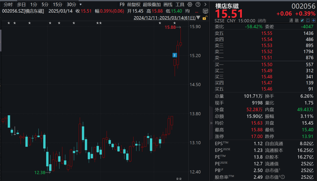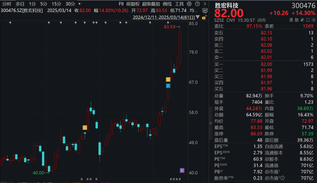 消息面上来看,3月14日,金价再创新高,带动黄金珠宝板块上扬。当日,伦敦现货黄金突破3000美元大关,再创历史新高,以人民币计价的黄金期货、现货价格纷纷上涨,带动部分品牌金店足金饰品报价首次突破每克900元关口,每克报价905元左右,再创新高。