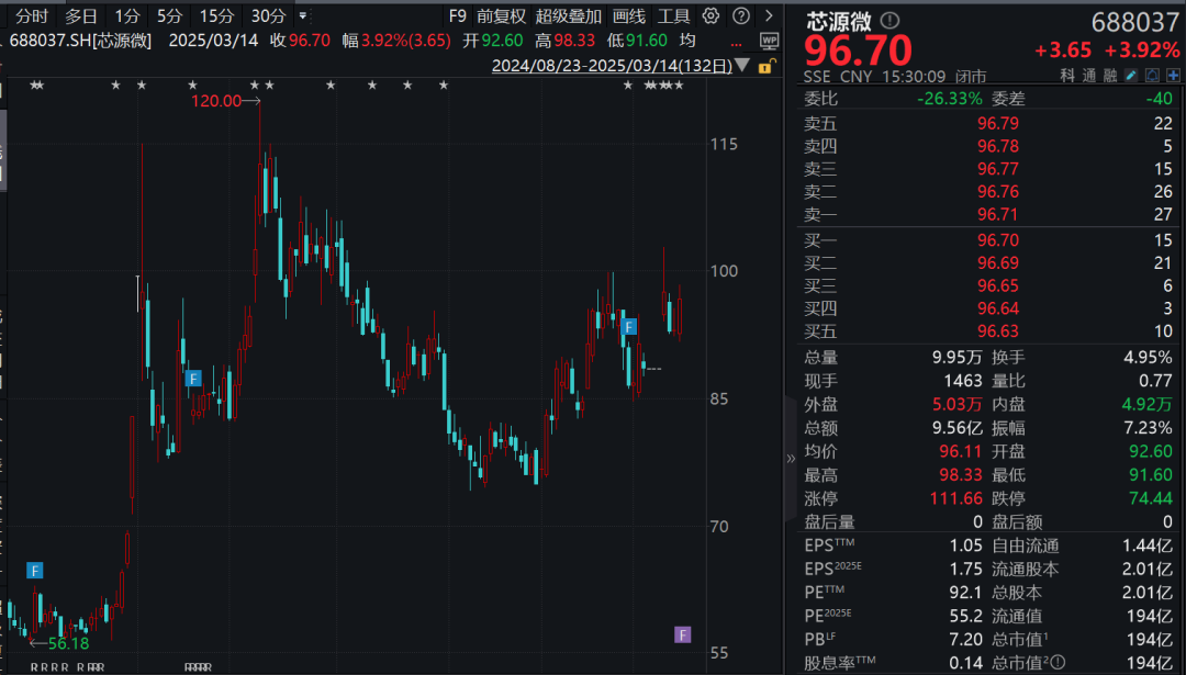 芯源微本周共接受122家机构调研,机构重点关注北方华创入主芯源微交易情况。3月10日晚,芯源微与北方华创发布公告,北方华创以现金为对价,协议受让沈阳先进制造技术产业有限公司(下称“先进制造”)持有的芯源微9.49%股份,受让价格为88.48元/股,交易对价合计16.87亿元。