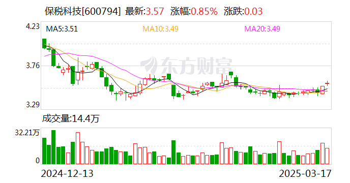 3月17日,保税科技(600794)发布公告,拟定2024年度利润分配方案,每10股分配现金红利0.3元(含税),总现金分红金额为8401万元,占2024年合并报表归母净利润的40.05%。
