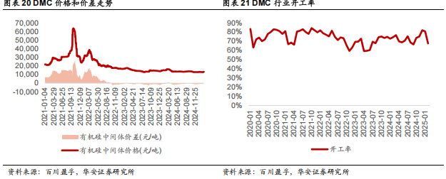 有机硅 DMC 行业仍处于整体亏损,盈利处于历史极低位。随着资本开支的下降,行业过剩产能逐步被内外需求消化,近期行业开工率开始出现上升趋势,2025 年 1 月开工率回升至 80.69%。随着供需改善,企业盈利将回升。
