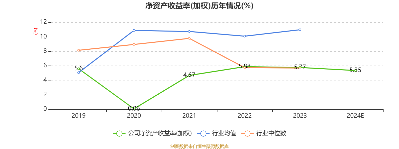 数据显示,2024年公司加权平均净资产收益率为5.35%,较上年同期下降0.42个百分点。