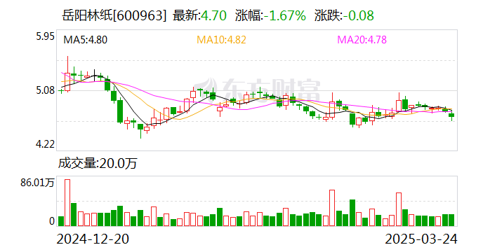 2024年,岳阳林纸实现收入81.35亿元,归母净利润1.67亿元。