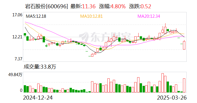 岩石股份(维权)(600696)今日上涨4.80%,全天换手率10.10%,成交额3.54亿元,振幅18.65%。龙虎榜数据显示,营业部席位合计净买入3290.23万元。
