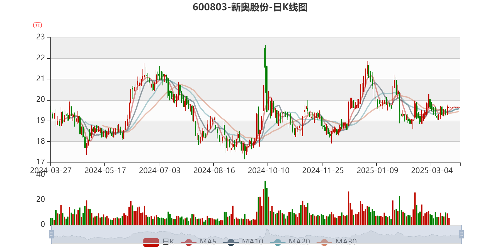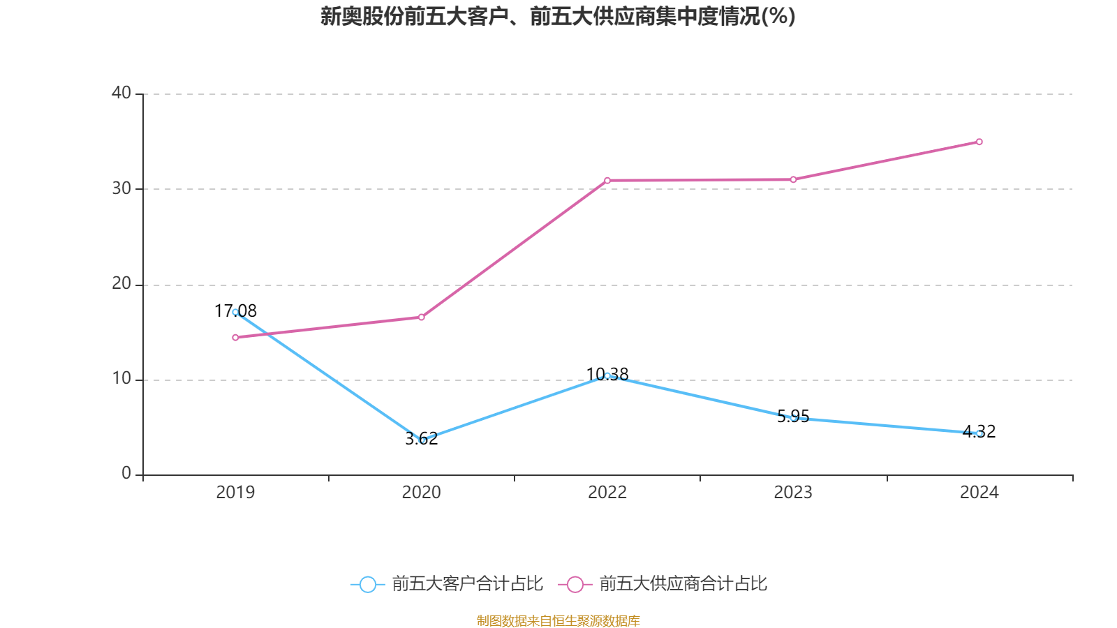 值得注意的是,中登公司数据显示,截至2025年3月21日,新奥股份12.09%股份处于质押状态。年报显示,第二大股东新奥控股投资股份有限公司质押2.14亿股公司股份,占其全部持股的57.23%;第五大股东廊坊合源投资中心(有限合伙)质押6384万股公司股份,占其全部持股的64.9%;第六大股东河北威远集团有限公司质押5251万股公司股份,占其全部持股的59%。