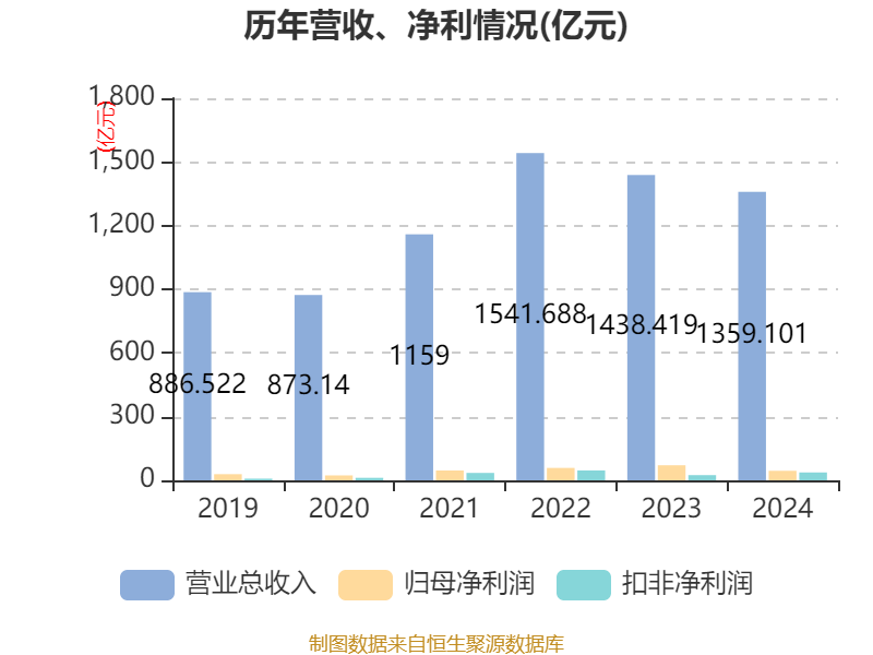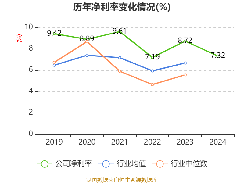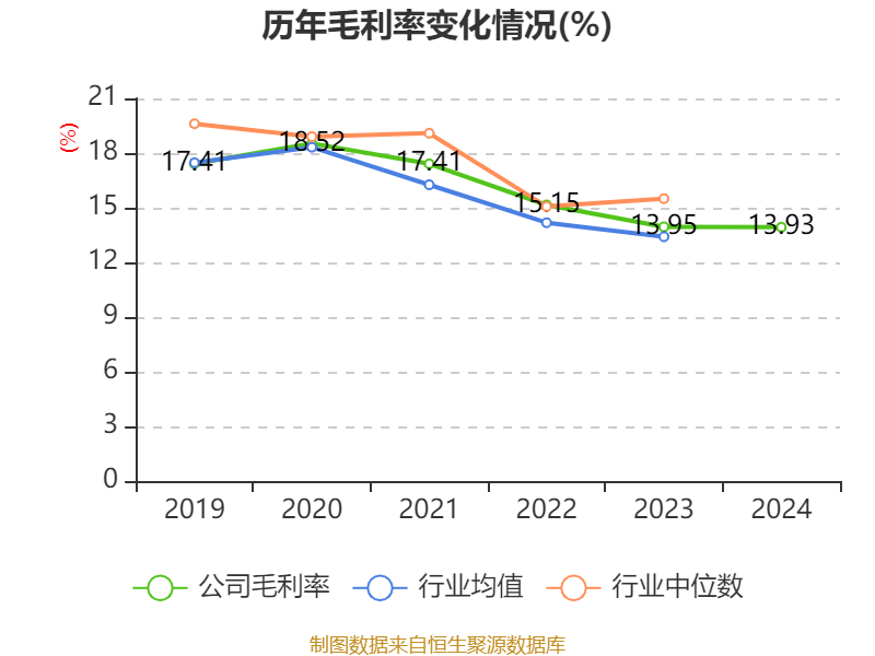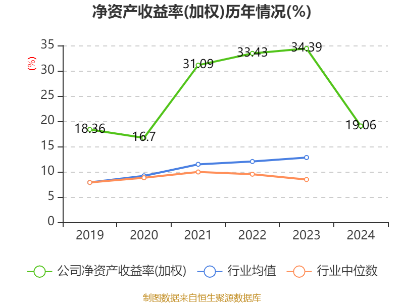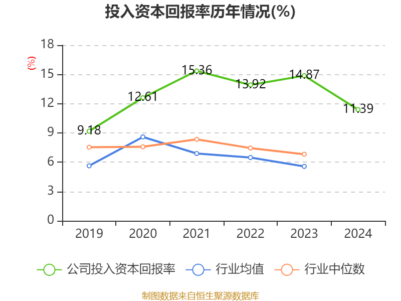 数据显示,2024年公司加权平均净资产收益率为19.06%,较上年同期下降15.33个百分点。公司2024年投入资本回报率为11.39%,较上年同期下降3.48个百分点。