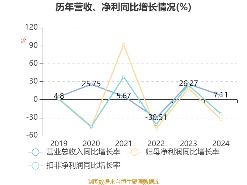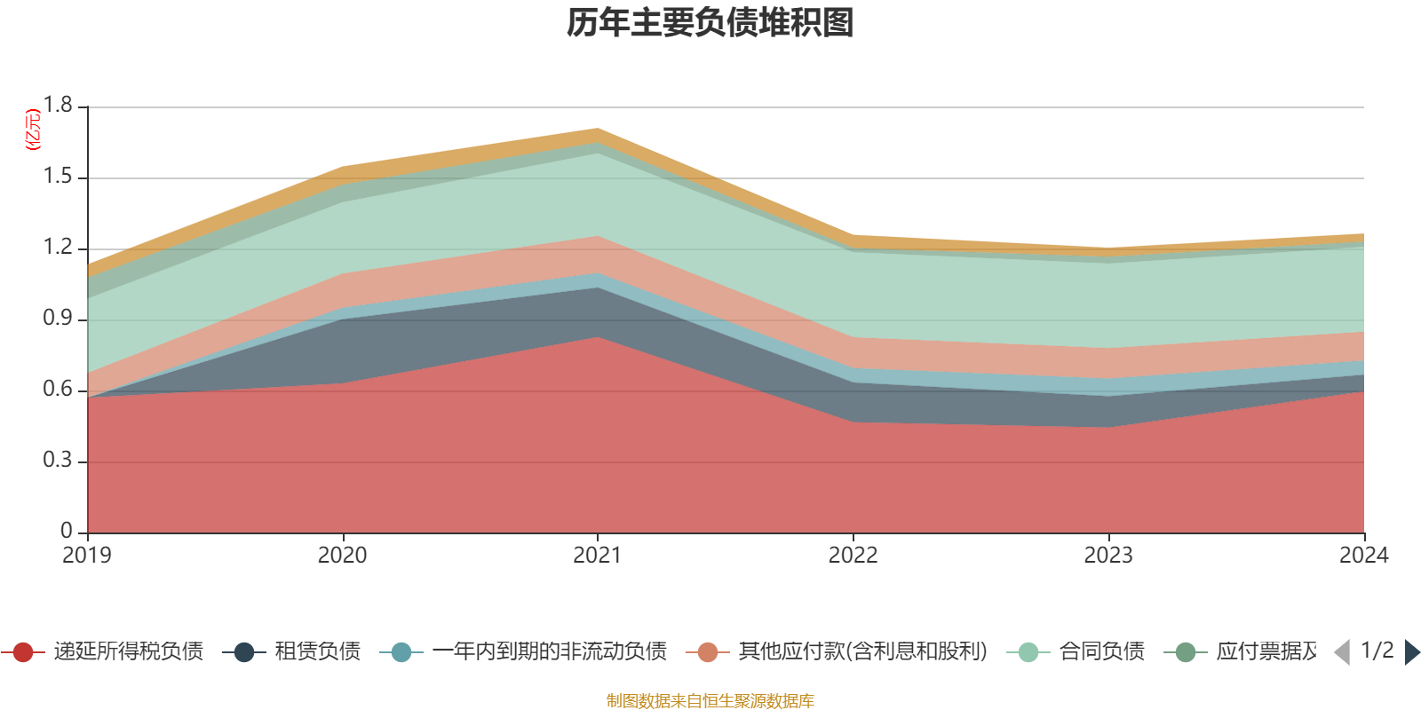 负债重大变化方面,截至2024年末,公司递延所得税负债较上年末增加34.4%,占公司总资产比重上升0.79个百分点;租赁负债较上年末减少46.25%,占公司总资产比重下降0.41个百分点;一年内到期的非流动负债较上年末减少19.46%,占公司总资产比重下降0.11个百分点;合同负债较上年末增加0.46%,占公司总资产比重下降0.09个百分点。