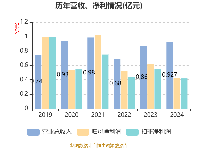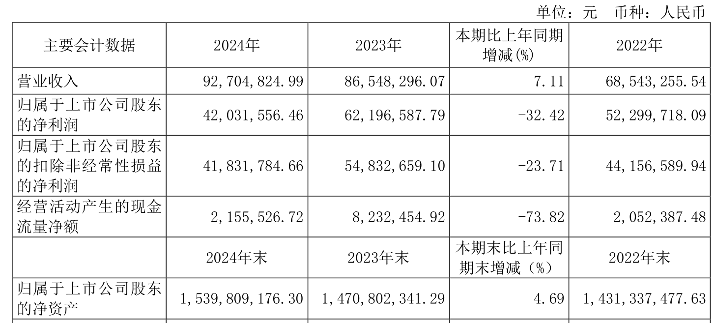 中证智能财讯上海九百(600838)3月28日披露2024年年度报告。2024年,公司实现营业总收入9270.48万元,同比增长7.11%;归母净利润4203.16万元,同比下降32.42%;扣非净利润4183.18万元,同比下降23.71%;经营活动产生的现金流量净额为215.55万元,同比下降73.82%;报告期内,上海九百基本每股收益为0.1048元,加权平均净资产收益率为2.83%。公司2024年度分配预案为:拟向全体股东每10股派现0.32元(含税)。