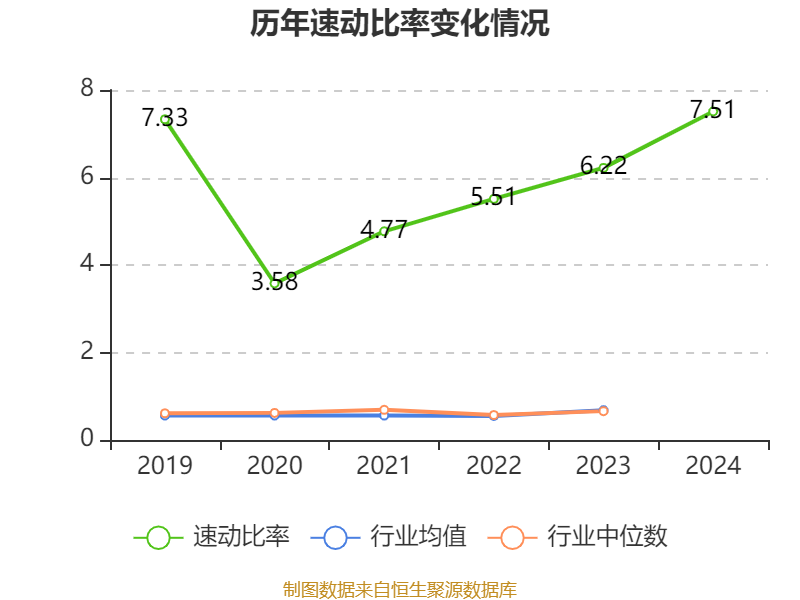 2024年,公司流动比率为7.79,速动比率为7.51。