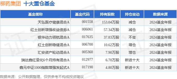 持有柳药集团最多的基金为天弘医疗健康混合A,目前规模为2.39亿元,最新净值1.3357(3月27日),较上一交易日上涨2.23%,近一年下跌6.15%。该基金现任基金经理为吕俏。