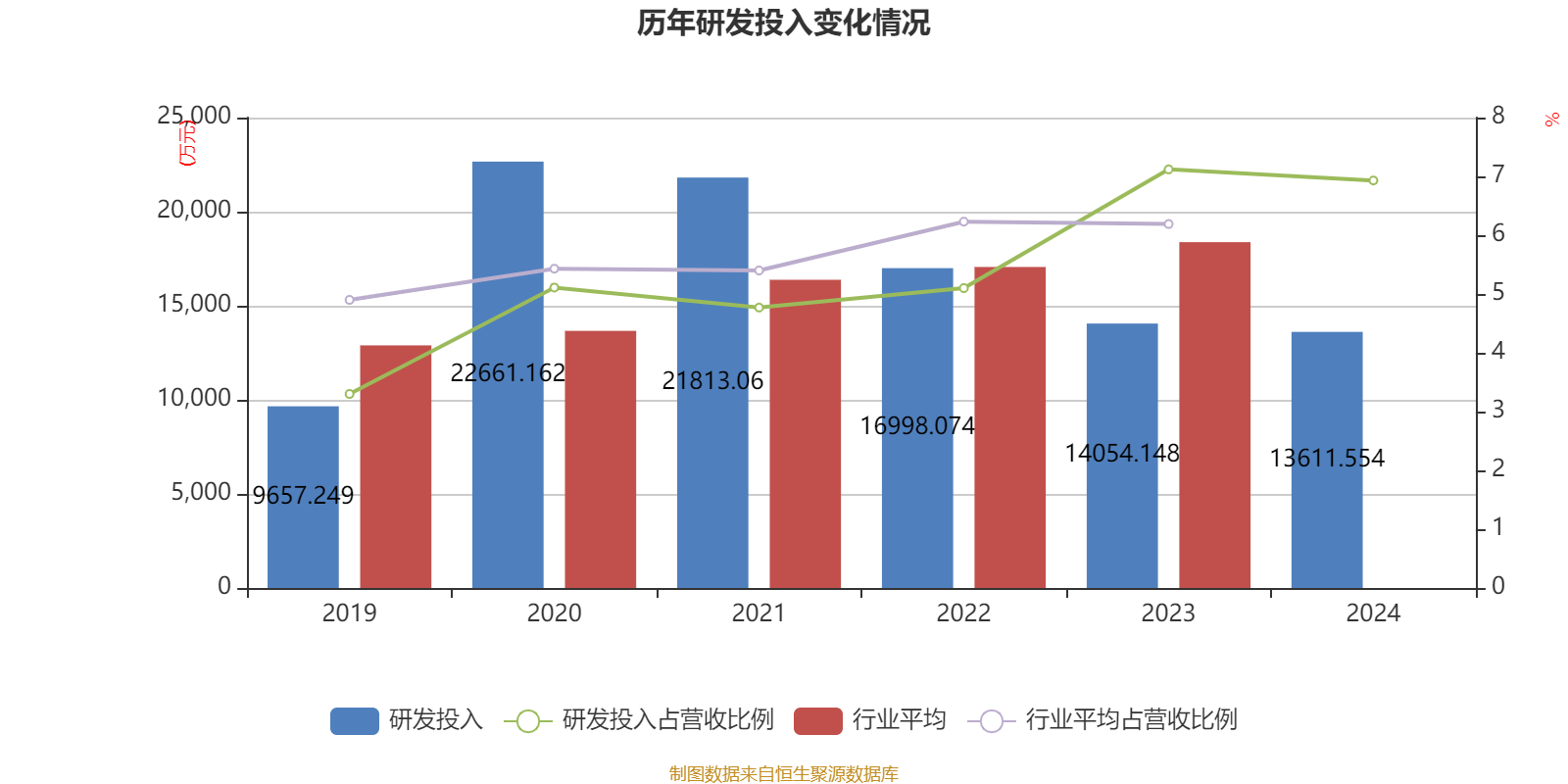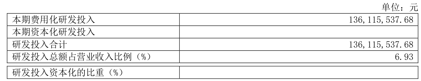 2024年全年,公司研发投入金额为1.36亿元,同比下降3.15%;研发投入占营业收入比例为6.93%,相比上年同期下降0.19个百分点。此外,公司全年研发投入资本化率为0%。