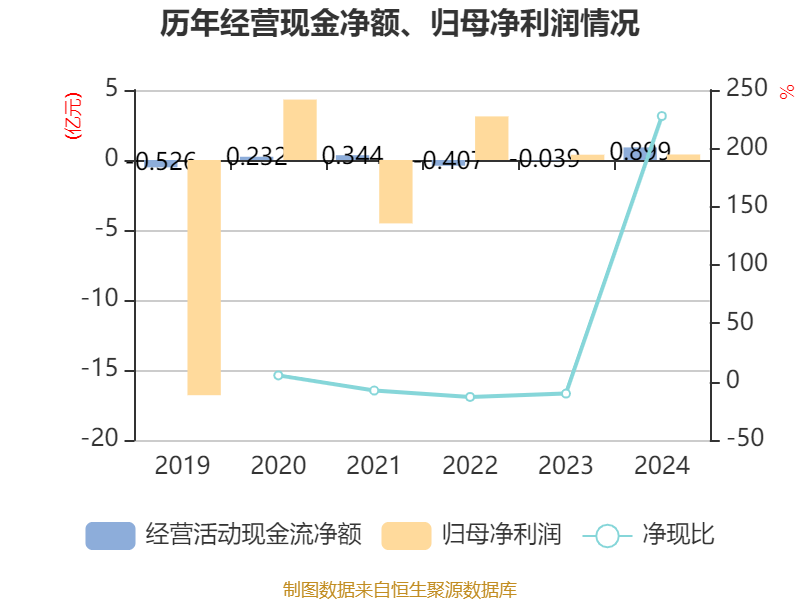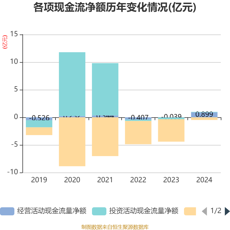 截至2024年,公司经营活动现金流净额为8987.62万元,同比增加9375.37万元;筹资活动现金流净额-4836.69万元,同比增加3.57亿元;投资活动现金流净额857.65万元,上年同期为-3144.6万元。