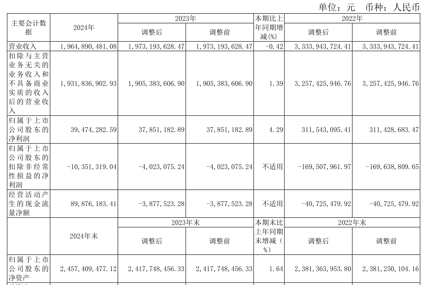 中证智能财讯飞乐音响(600651)3月28日披露2024年年度报告。2024年,公司实现营业总收入19.65亿元,同比下降0.42%;归母净利润3947.43万元,同比增长4.29%;扣非净利润亏损1035.13万元,上年同期亏损402.31万元;经营活动产生的现金流量净额为8987.62万元,上年同期为-387.75万元;报告期内,飞乐音响基本每股收益为0.016元,加权平均净资产收益率为1.62%。