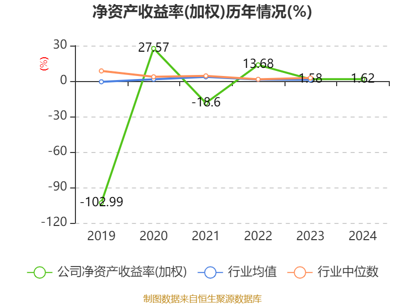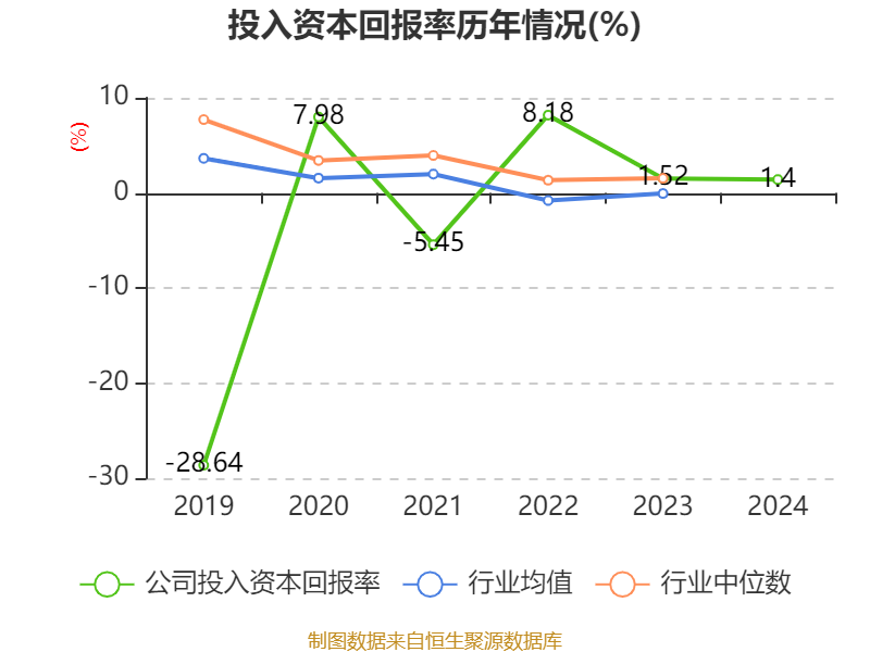 数据显示,2024年公司加权平均净资产收益率为1.62%,较上年同期上升0.04个百分点。公司2024年投入资本回报率为1.4%,较上年同期下降0.12个百分点。