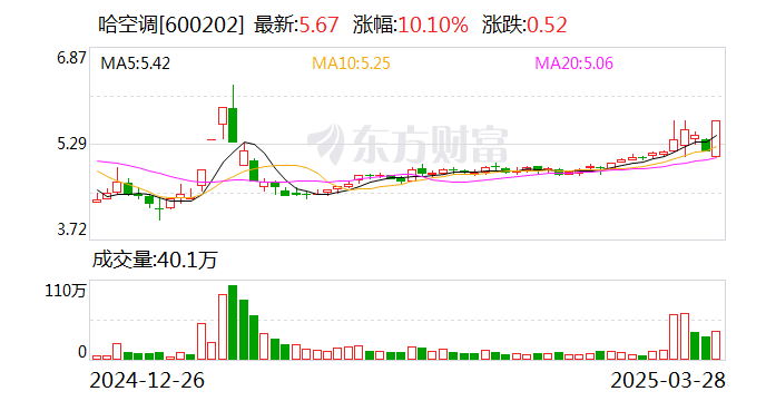哈空调(600202)今日涨停,全天换手率10.46%,成交额2.23亿元,振幅12.06%。龙虎榜数据显示,机构净卖出567.00万元,营业部席位合计净买入3421.39万元。