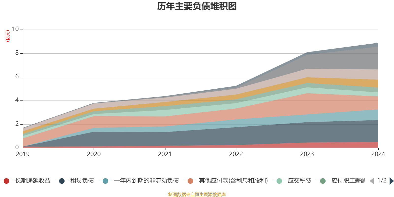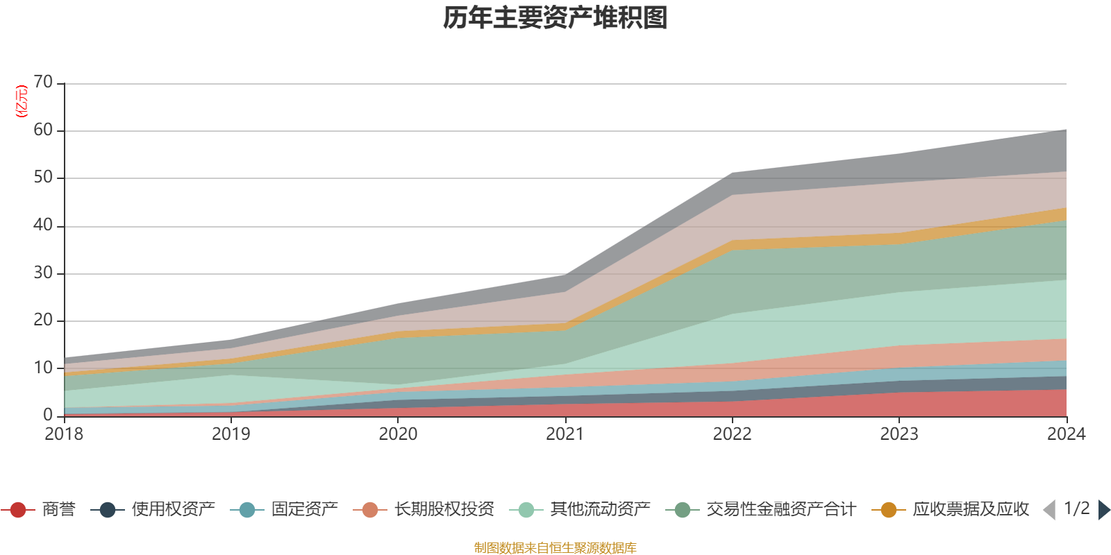 负债重大变化方面,截至2024年末,公司其他应付款(含利息和股利)较上年末减少38.3%,占公司总资产比重下降1.41个百分点;交易性金融负债合计较上年末增加64.23%,占公司总资产比重上升1.07个百分点;应交税费较上年末减少32.97%,占公司总资产比重下降0.35个百分点;一年内到期的非流动负债较上年末增加36.34%,占公司总资产比重上升0.3个百分点。