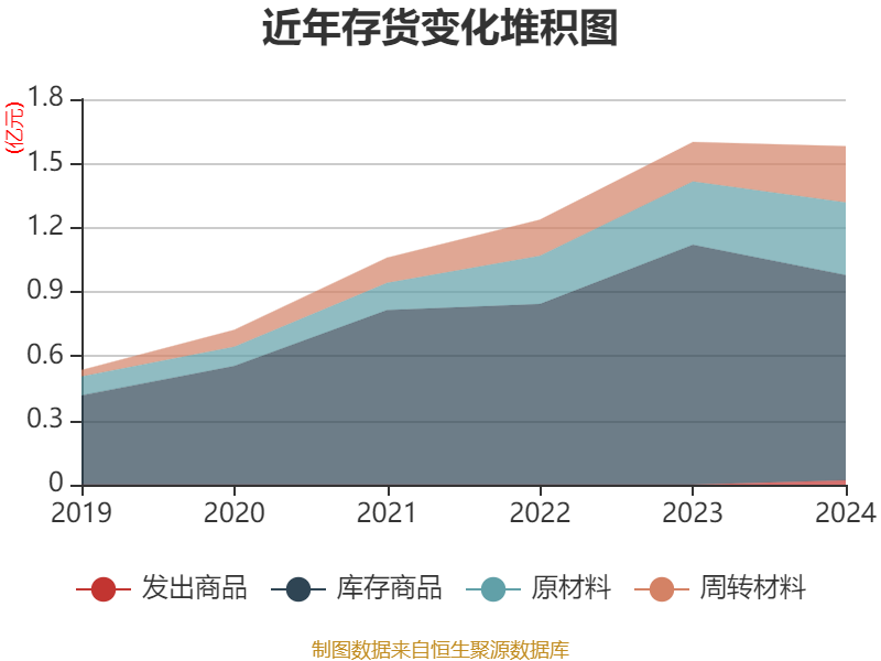从存货变动来看,截至2024年末,公司存货账面价值为1.58亿元,占净资产的3.36%,较上年末减少197.93万元。其中,存货跌价准备为561.58万元,计提比例为3.43%。