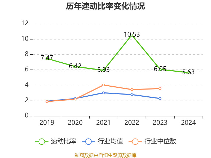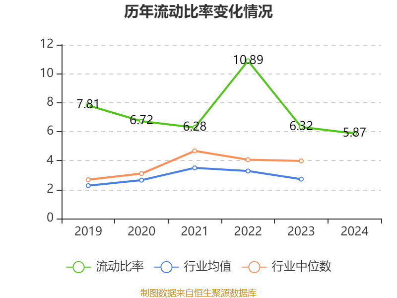 2024年,公司流动比率为5.87,速动比率为5.63。