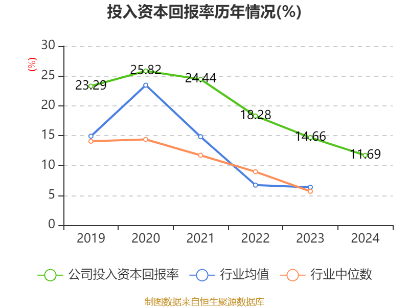 数据显示,2024年公司加权平均净资产收益率为12.69%,较上年同期下降2.89个百分点。公司2024年投入资本回报率为11.69%,较上年同期下降2.97个百分点。