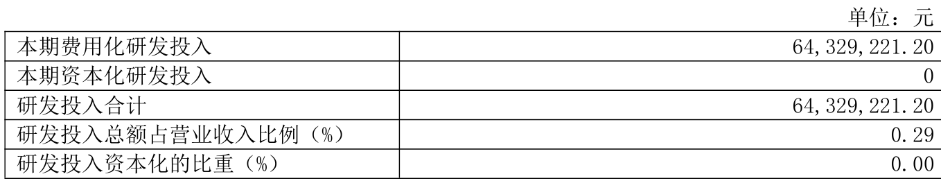 2024年全年,公司研发投入金额为6432.92万元,同比增长2.52%;研发投入占营业收入比例为0.29%,相比上年同期上升0.01个百分点。此外,公司全年研发投入资本化率为0%。