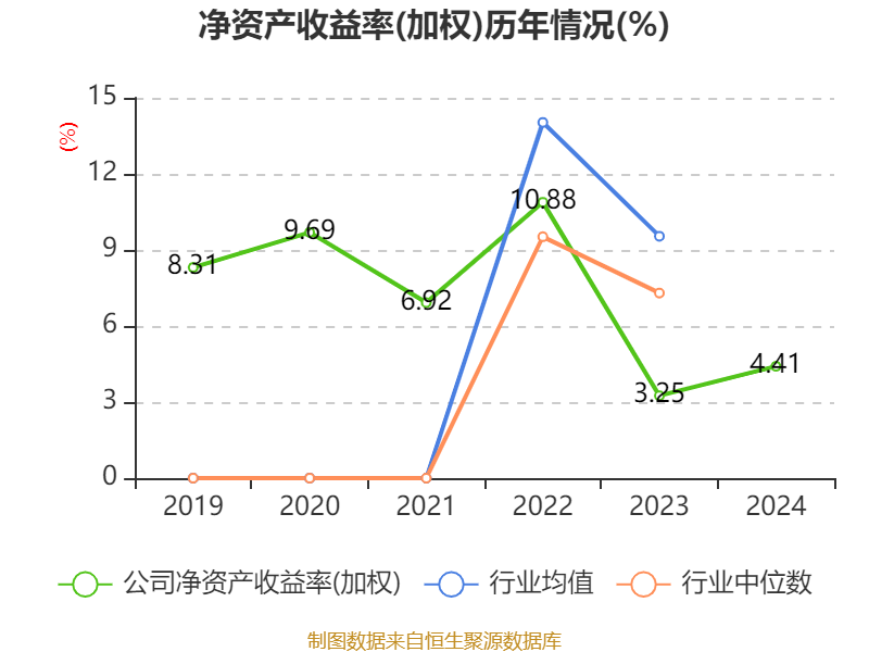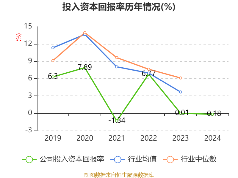 数据显示,2024年公司加权平均净资产收益率为4.41%,较上年同期上升1.16个百分点。公司2024年投入资本回报率为-0.18%,较上年同期下降0.17个百分点。