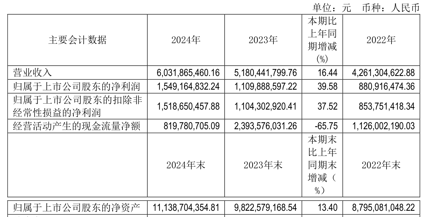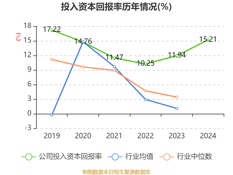 数据显示,2024年公司加权平均净资产收益率为14.81%,较上年同期上升2.88个百分点。公司2024年投入资本回报率为15.21%,较上年同期上升3.27个百分点。