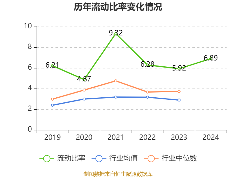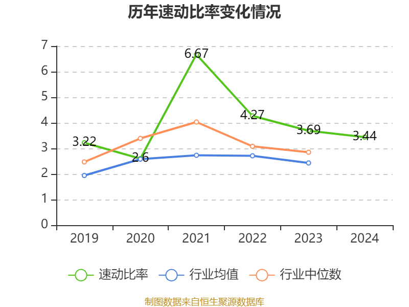 2024年,公司流动比率为6.89,速动比率为3.44。