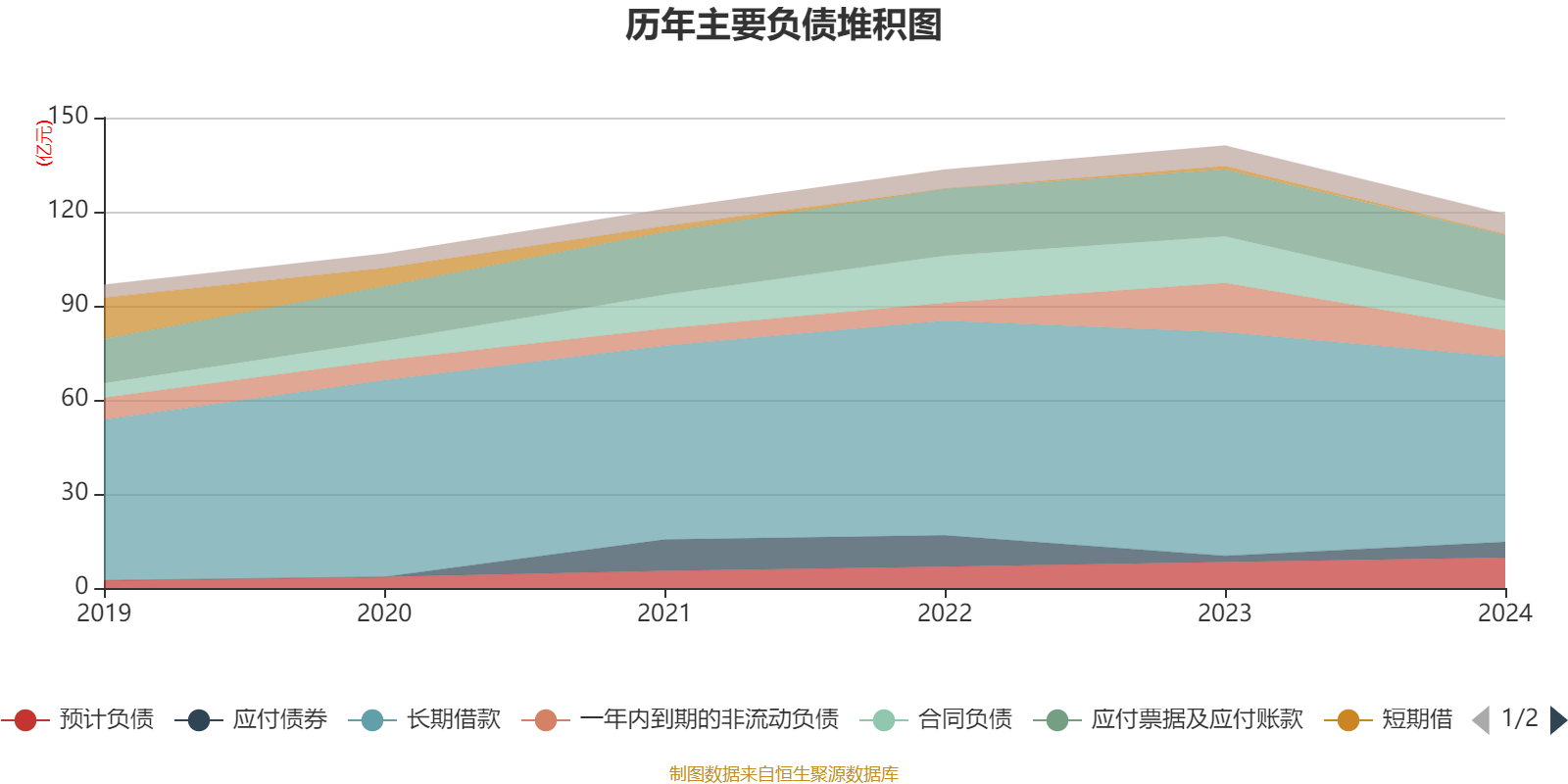 负债重大变化方面,截至2024年末,公司长期借款较上年末减少17.22%,占公司总资产比重下降3.34个百分点;一年内到期的非流动负债较上年末减少46.72%,占公司总资产比重下降2.69个百分点;合同负债较上年末减少35.93%,占公司总资产比重下降1.87个百分点;应付债券较上年末增加150.48%,占公司总资产比重上升1.32个百分点。