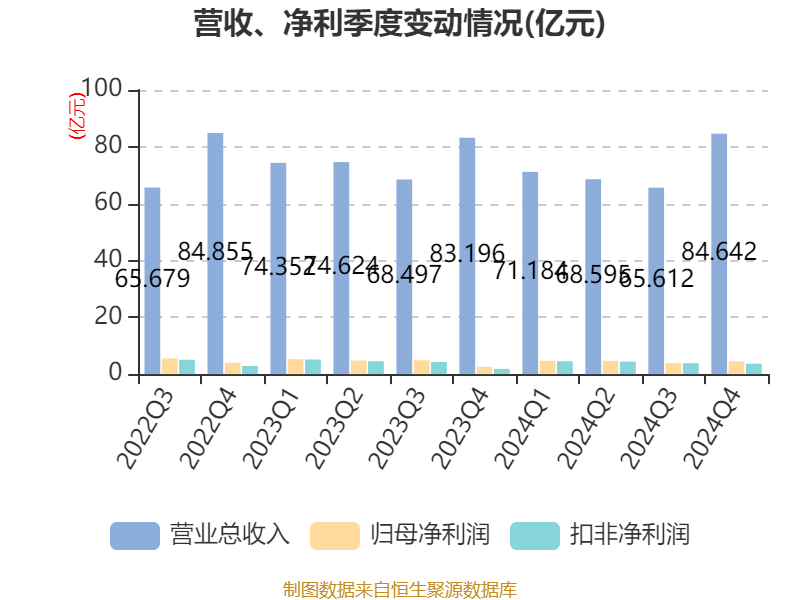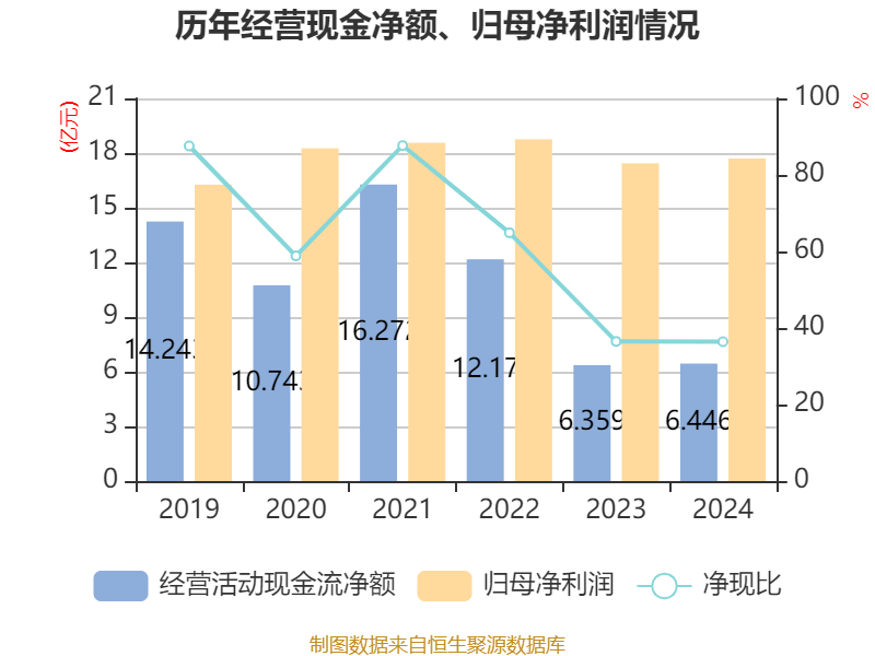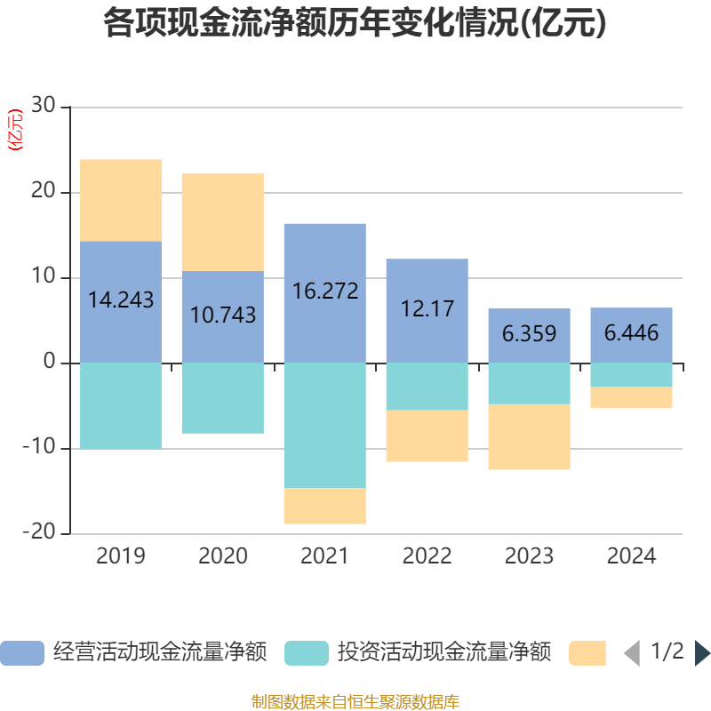 截至2024年,公司经营活动现金流净额为6.45亿元,同比增长1.37%;筹资活动现金流净额-2.44亿元,同比增加5.22亿元;投资活动现金流净额-2.88亿元,上年同期为-4.89亿元。