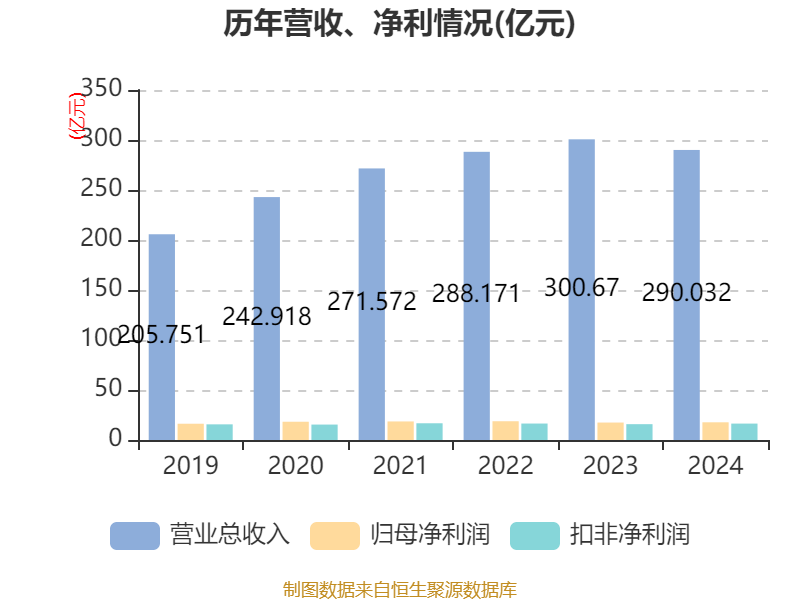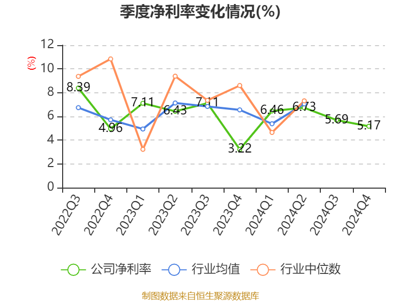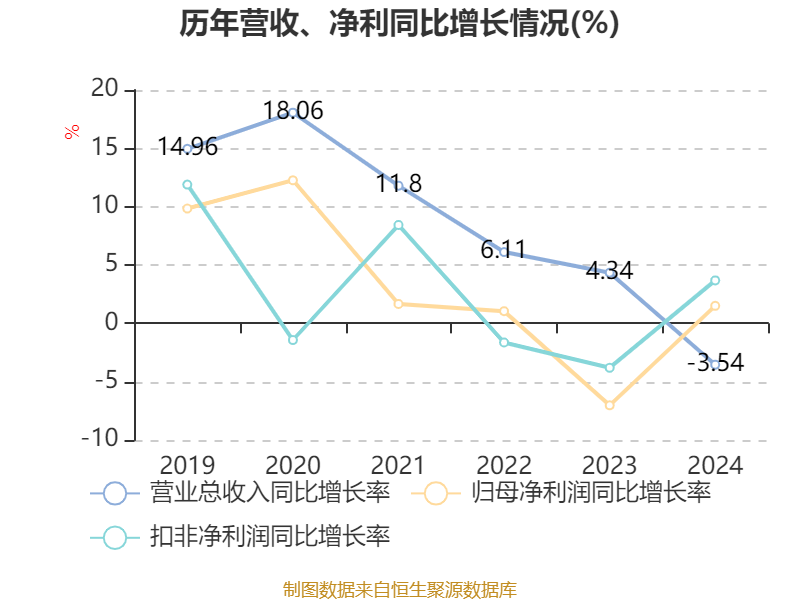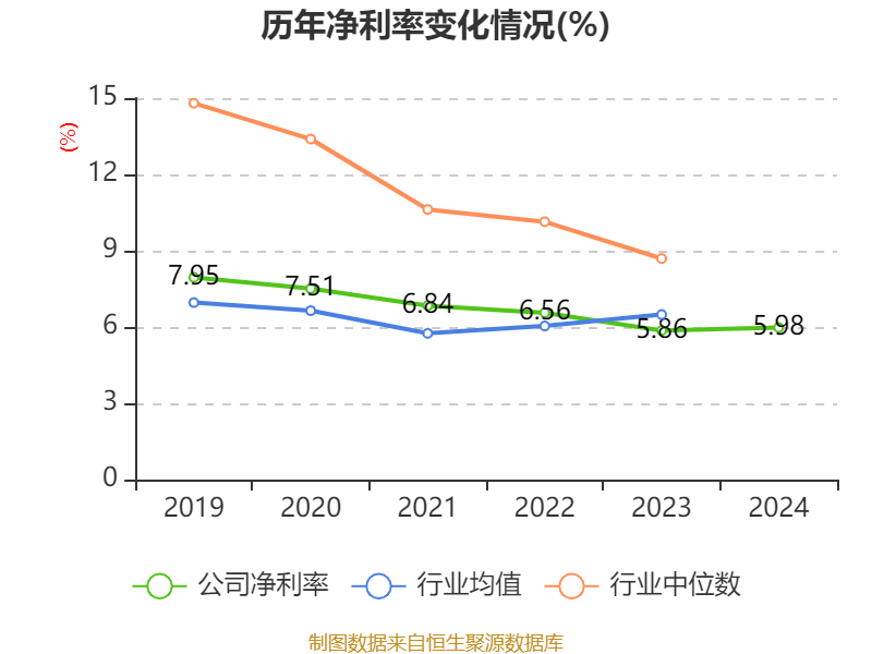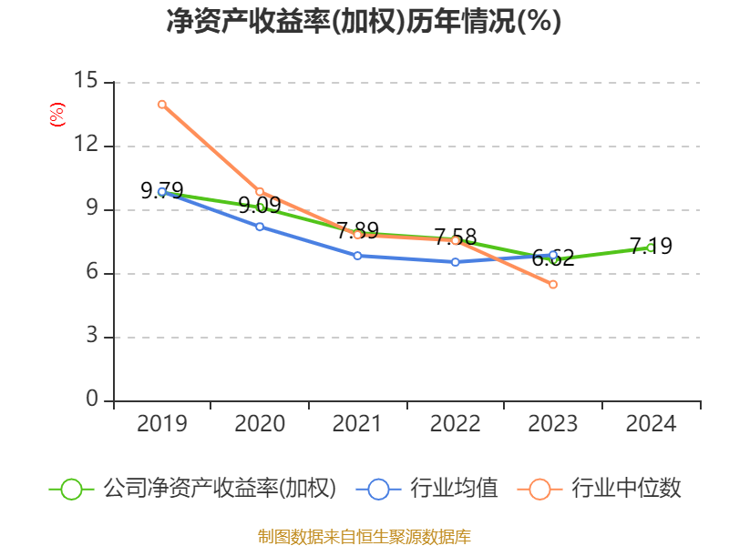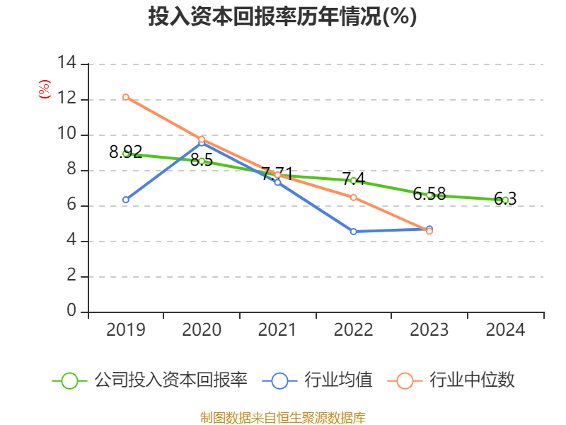 数据显示,2024年公司加权平均净资产收益率为7.19%,较上年同期上升0.57个百分点。公司2024年投入资本回报率为6.3%,较上年同期下降0.28个百分点。