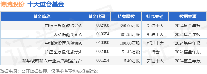持有博腾股份最多的基金为中信建投医改混合A,目前规模为5.81亿元,最新净值1.6167(3月28日),较上一交易日上涨0.29%,近一年下跌4.3%。该基金现任基金经理为谢玮。