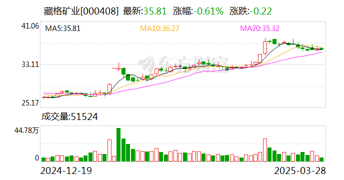资料显示,2025年1月,藏格矿业发布公告,紫金国际拟通过协议转让方式取得公司控制权。本次交易完成后,藏格矿业将依托紫金矿业进一步提高公司自身矿产资源开发水平,提高资源利用效率,加快实现成为国际一流矿业集团的战略目标。(宋元东)