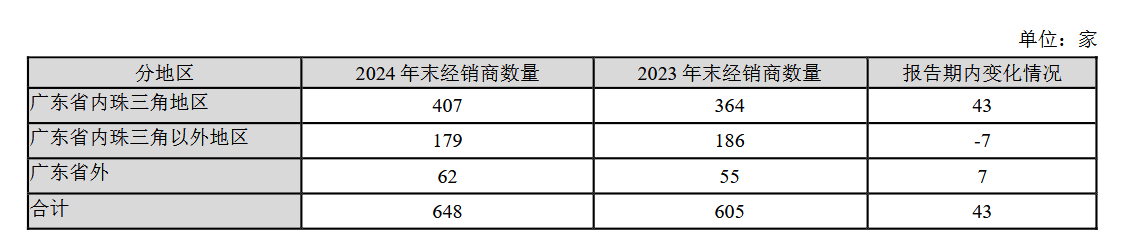 财报显示,公司属于区域性城市型乳制品龙头企业,业务区域主要在华南地区,重点在广东省,公司在广东省外的销售业务已在周边省份逐步展开并增长显著。不过,2024年,燕塘乳业共有648个经销商,广东省外只有62个。