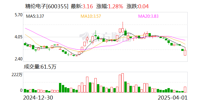 精伦电子(600355)今日上涨1.28%,全天换手率12.49%,成交额1.90亿元,振幅18.86%。龙虎榜数据显示,营业部席位合计净买入2783.49万元。