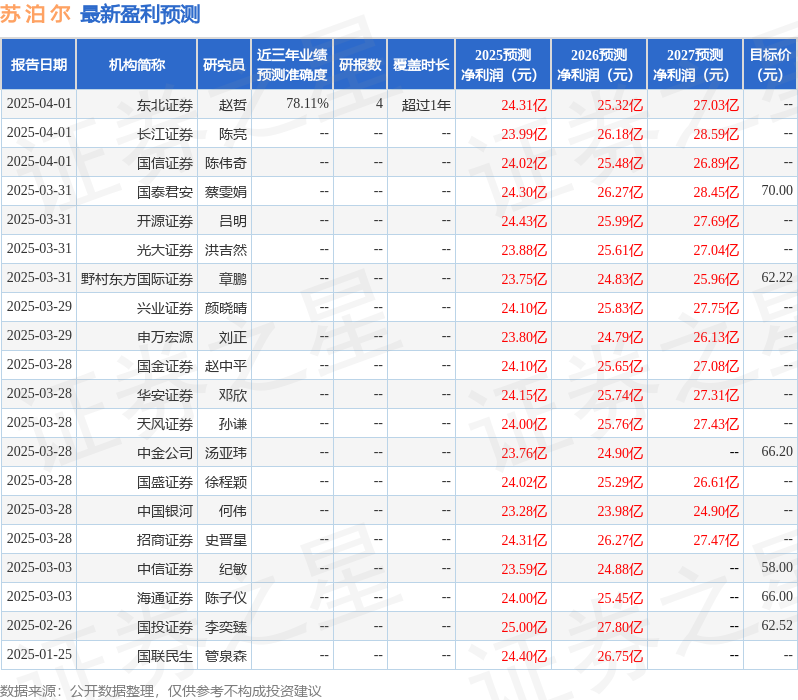 证券之星数据中心根据近三年发布的研报数据计算,东北证券赵哲研究员团队对该股研究较为深入,近三年预测准确度均值为78.11%,其预测2025年度归属净利润为盈利24.31亿,根据现价换算的预测PE为19.57。