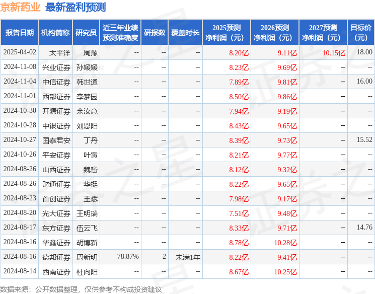 证券之星消息,2025年4月3日京新药业(002020)发布公告称兴业证券孙媛媛 邹文凯、开源证券余汝意 刘艺、宁银理财徐厚犇、国盛证券宋歌、方正证券许睿 郭雪寒、光证资管陈峰、银叶投资金晨 李悦、优益增投资刘敏、观合资产张腾、北京明希资本周彬、北京泾谷私募蒋海、广东正圆私募亓辰 张萍、平安证券叶寅 韩盟盟 臧文清 李峰 李欣雨、劲邦资本孙颖、中域投资韩雪、南华基金刘凯兴、国华兴盛资管范佳锴、翼虎投资黄琦、红塔红土基金曹阳、平安理财袁野、上海途灵资产赵梓峰、相聚资本邓巧、上海高恩私募高惠明、天风证券李慧瑶、南方基金郗晓宸、中邮证券鲁春娥、华夏久盈桑永亮、中航基金王子瑞、高毅资产胡储辉 冯鹏、长江养老邱宏斌、慎知资产高岳 师成平、禧弘投资杨莹、昆仑健康周志鹏、中国国际金融股份有限公司李梦遥、山西证券魏赟 张智勇 李培玉、苏州高新私募高俊、深圳尚诚资产黄向前、农银人寿王鹏、青骊赵栋、青榕资产唐明、上汽颀臻沈怡雯、上海禧弘私募谢宁宁、天治基金王娟、摩根士丹利华鑫基金王卫铭、中国人寿养老王靖予、国联民生证券郑薇 夏禹、贝莱德神玉飞、中信资管沈威宇、申万宏源资管陈旻、北信瑞丰基金庞文杰 张文博、浙商证券资管严洋、西藏合众易晟投资王华均、璞智投资温灵军、中泰资管周旭驰、浙商资管赵媛、长信基金程放、华创证券朱珂琛、汇添富张韡、汉享投资叶涛金、玖鹏投资陆漫漫、中信证券郑浩洋、金山湖投资郑光强、中原证券陈琳琳、九水投资黄建忠、东海证券刘涛、博时基金张之瑞 冯喜建、华安证券谭国超 熊骥溟、太平洋证券周豫、中信期货魏巍、红土创新基金杨一、恒生前海基金鲁娜、泰康基金何羽、招商证券邱捷铭、东海基金王靖予 胡德军、万和证券许俊武、长盛基金洪靖怡、中融汇信投资文惠霞、上海东方证券资产王佳骏、东吴证券冉胜男、上银基金杨建楠、富荣基金曾博文、同泰基金义胜军、华福证券吴沛柯、天弘基金王斌、HBM Partners Hong Kong Limited郭牧青、兴证国际吴灵宇、光大保德信基金林晓枫、上海景领投资傅深林、东财证券何玮、西部证券邓琳茜、上海君和立成投资崔雨菲 祝晨宇、招商基金马晓蕾 杨振雄、山证资管陈南荣、上海金恩投资林仁兴、国泰君安证券吴晗、上海理成资产周锐、富安达基金李胜敏、建信理财郑蕾蕾、西部利得基金冯皓琪、申万医药陈田甜于2025年4月3日调研我司。