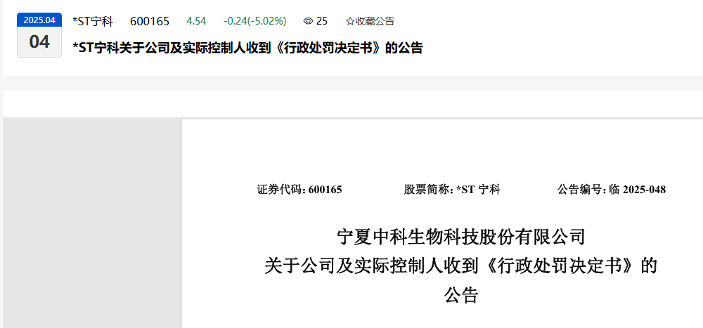 公司及虞建明先生于2025年4月3日收到中国证监会宁夏监管局下发的《行政处罚决定书》(宁证监处罚字[2025]2号),相关情况公告如下:
