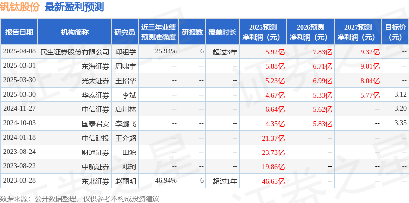 以下是详细的盈利预测信息: