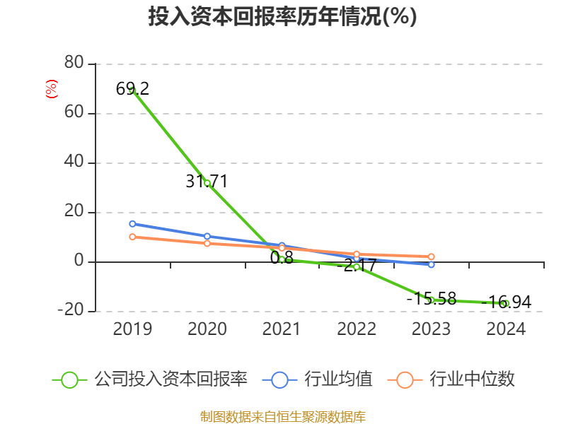 数据显示,2024年公司加权平均净资产收益率为-20.19%,较上年同期下降3.47个百分点。公司2024年投入资本回报率为-16.94%,较上年同期下降1.36个百分点。