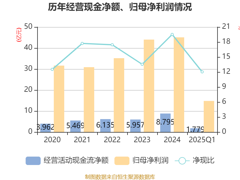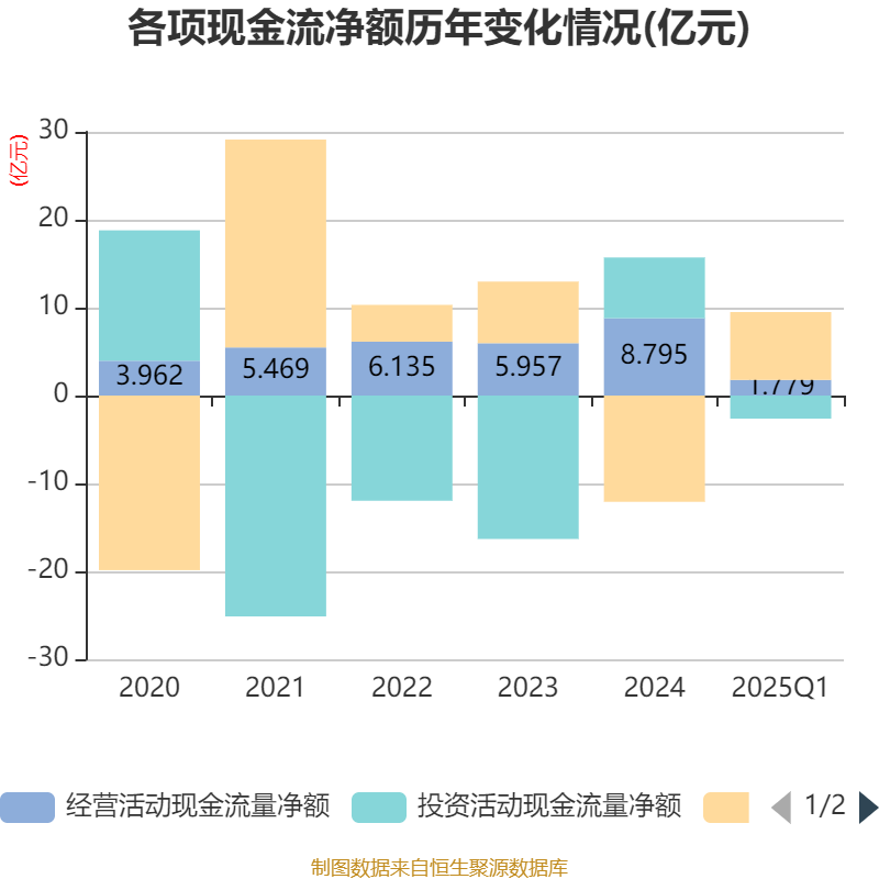 截至2025年一季度末,公司经营活动现金流净额为1.78亿元,同比增长0.35%;筹资活动现金流净额7.72亿元,同比增加3.68亿元;投资活动现金流净额-2.63亿元,上年同期为-1.41亿元。