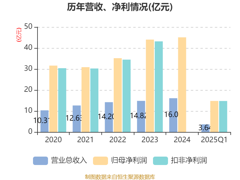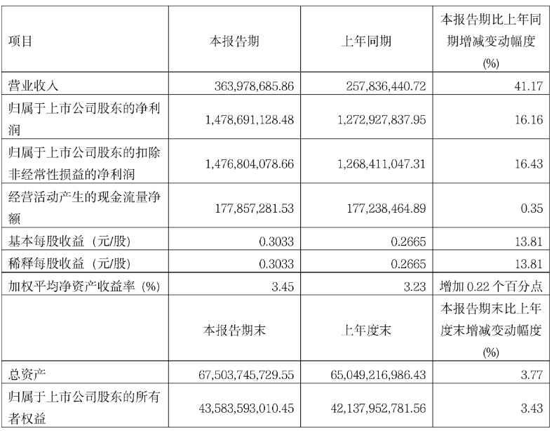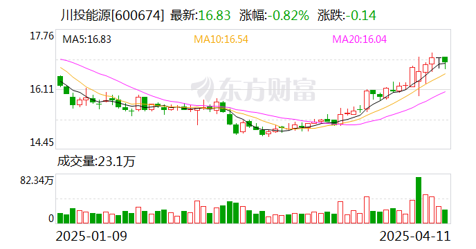 中证智能财讯川投能源(600674)4月12日披露2025年第一季度报告。公司实现营业总收入3.64亿元,同比增长41.17%;归母净利润14.79亿元,同比增长16.16%;扣非净利润14.77亿元,同比增长16.43%;经营活动产生的现金流量净额为1.78亿元,同比增长0.35%;报告期内,川投能源基本每股收益为0.3033元,加权平均净资产收益率为3.45%。