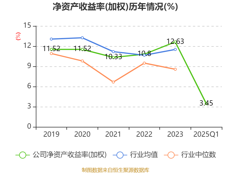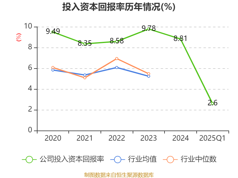 盈利能力方面, 2025年一季度公司加权平均净资产收益率为3.45%,同比上升0.22个百分点。公司2025年第一季度投入资本回报率为2.6%,较上年同期上升0.11个百分点。