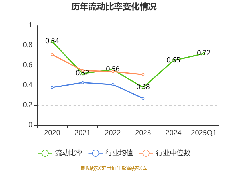 2025年第一季度,公司流动比率为0.72,速动比率为0.71。