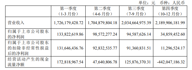 但在业绩增长良好的年报背后,该公司藏着第四季度净利和现金流骤减、资产负债率高企、新增产能消化不及预期等隐忧。