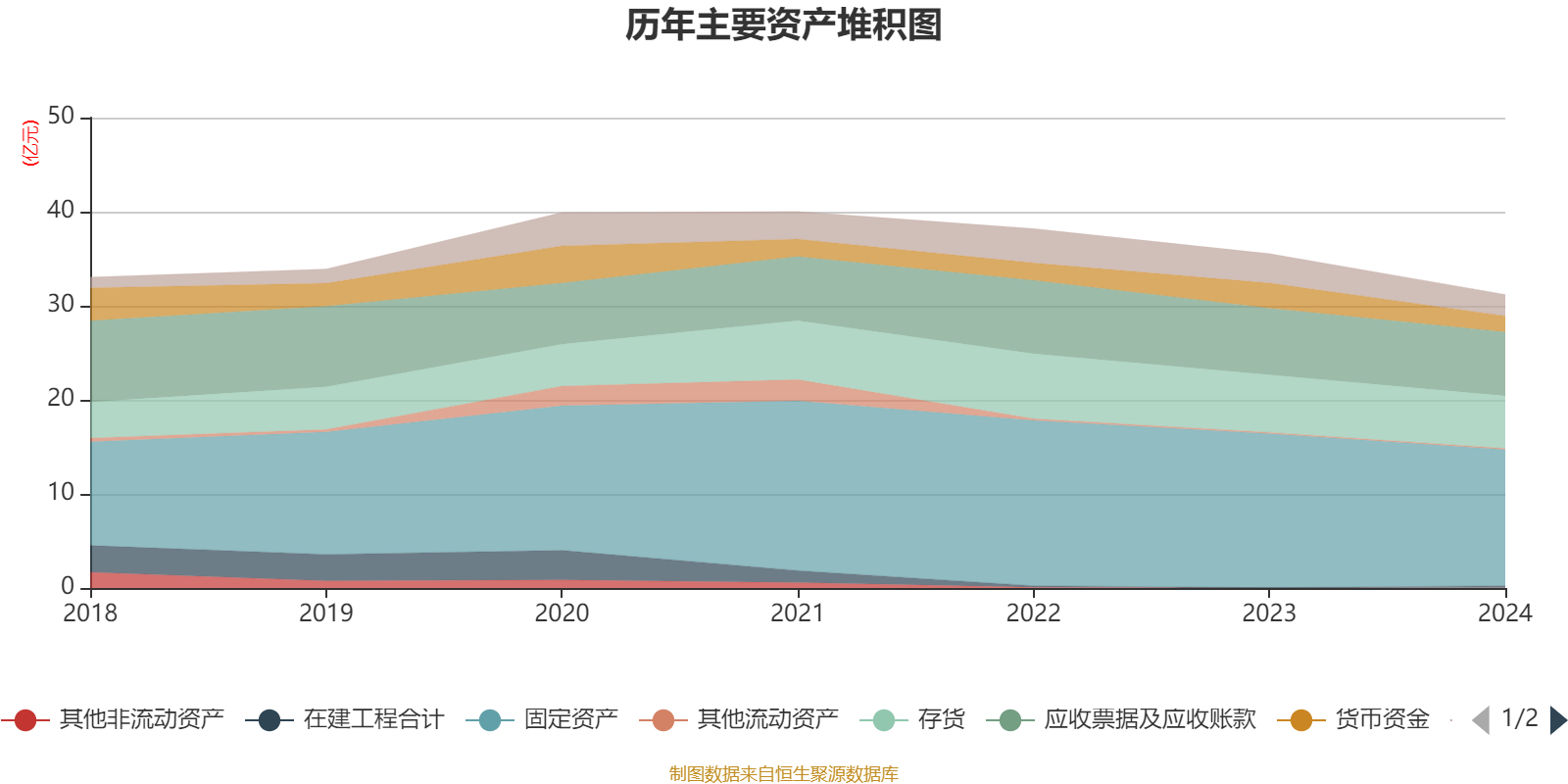 资产重大变化方面,截至2024年末,公司应收款项融资较上年末减少60.92%,占公司总资产比重下降2.15个百分点;货币资金较上年末减少36.48%,占公司总资产比重下降2.08个百分点;应收票据及应收账款较上年末减少3.93%,占公司总资产比重上升1.88个百分点;存货较上年末减少8.69%,占公司总资产比重上升0.69个百分点。
